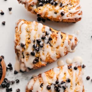 I make Strawberry Scones all the time because my kids love them! A few days ago, I was craving a batch but didn’t have any strawberries, so I tweaked the recipe and made Chocolate Chip Scones instead. Thankfully, my kids were just as obsessed with these.