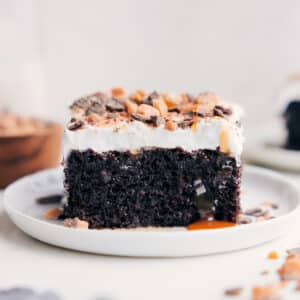 | Whipped topping | Let it fully thaw in the fridge so it spreads smoothly without tearing the top of this Chocolate Poke Cake. |