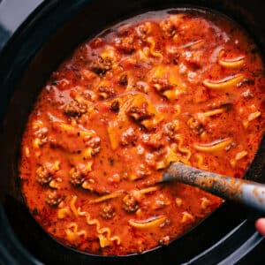 Crockpot Lasagna Soup is everything you love about lasagna in a bowl. Cheesy, hearty, and so easy to make, this recipe will be your new family favorite!