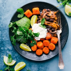 Deconstructed Beef Totchos are Tater Tot nachos dismantled into its component parts — we've got saucy beef and black beans, sweet potato puffs, and all your favorite nacho toppings. This meal is made on one sheet pan with less than 10 ingredients!