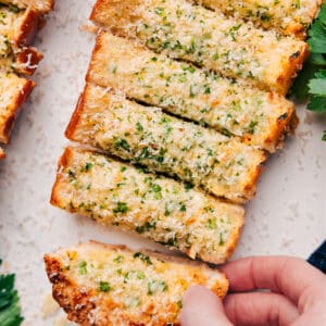 Garlic Bread Recipe made with French bread, creamy garlic Parmesan butter, and baked until golden and perfectly crisp on the edges.