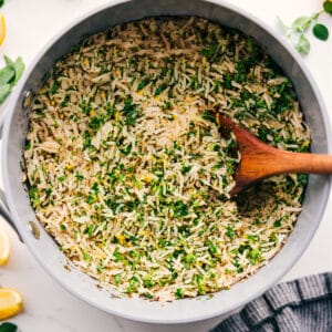 The lemon, the fresh herbs…this Greek Rice Recipe is just so dang good.
