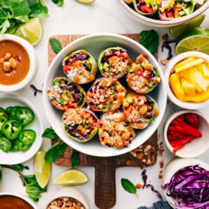 For a fun, interactive meal, set all the fillings out on the table with a bowl of water and teach everyone how to make their own spring rolls. It’s always a hit and turns dinner into something a little more fun!