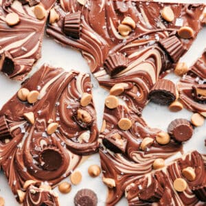 | Mini Reese’s cups | Press them gently into the warm bark so they stick well. I like to cut them in half for pops of peanut butter that’ll show through. |