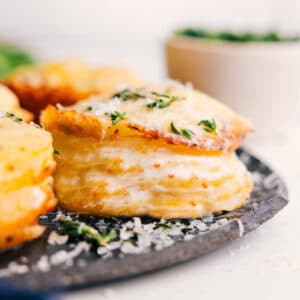 This Potato Stacks Recipe is one of the best ways to enjoy potatoes. They’re savory, cheesy, creamy, and melt-in-your-mouth delicious!