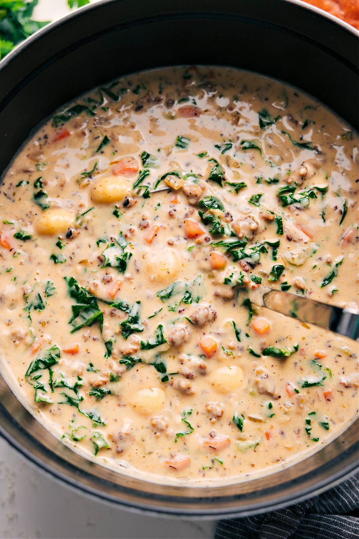 I went with a creamy white base and added kale for that Zuppa Toscana vibe, but the gnocchi (even though it’s made from potatoes) somehow completely changes it. It’s rich, hearty, and so satisfying in the best way.