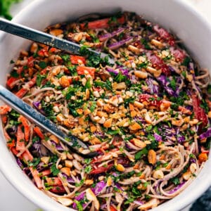 So, of course, I had to take those same flavors and turn them into this soba noodle salad recipe. And honestly…it might be my new favorite. If this is in my fridge, I’m sneaking a few bites every time I walk by. It’s that good!