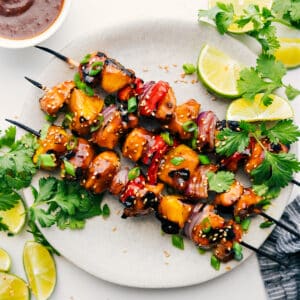 I’m all about grilled chicken, but throw it on a skewer with pineapple and veggies? Game over. Favorite meal right there!