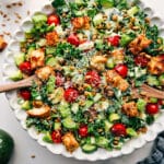 Note 1: I grate a block of Parmesan finely over the salad with a microplane. It gives the best texture!Storage: Because of the avocado, croutons, and sunflower seeds, this salad does not hold well once dressed. The avocado will brown and the toppings will soften. This salad is best enjoyed the same day.
