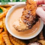 Serve tenders hot with sauce for dipping! These don’t stay crispy when stored, so I recommend breading and cooking only enough for one meal.