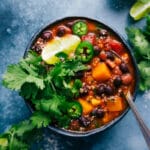 This nutritious Butternut Squash Chili is bursting with flavor and packed with healthy ingredients, including plenty of veggies, tender shredded chicken, and superfood quinoa.