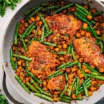 Chicken and butternut squash with crispy chicken, caramelized squash, and herby green beans—this meal is so tasty, it feels like dining out right at home!