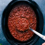 Note 1: I've also tested this recipe in a 6-quart Instant Pot. To prepare it this way, follow the above steps to sear the beef and sauté the vegetables. You can either do this in the Instant Pot using the sauté function—it takes about 6–7 minutes for the beef to sear nicely—or use a separate pan and transfer everything to the Instant Pot afterward. If you sauté in the Instant Pot, make sure to deglaze the pot thoroughly with a can of crushed tomatoes to avoid a burn warning.For Instant Pot preparation, you need to omit 1 can of crushed tomatoes and 1 can of chili beans, adding them at the end to prevent the cooker from being too full. Set the Instant Pot to manual for 60 minutes, allowing a natural release for 15 minutes before manually releasing the remaining pressure. For larger amounts, cook for 70 minutes for 3-1/2 pounds and 80 minutes for 4 pounds.Note 3: For maximum flavor and best texture, use high-quality tomatoes such as Cento Marzano®, Carmelina Marzano Italian®, or Muir Glen®. Note 4: This recipe uses American chili powder, not to be confused with chilli powder, which is very hot. I use McCormick®.Storage: Store leftovers in the fridge for 5 days, freeze some for later, or check out the post for fun ways to re-purpose leftovers.