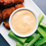 Serve as a veggie dip with sticks of celery, bell pepper, carrot, cucumber, and snap peas. Serve with wings: almost any flavor of chicken wings pairs nicely with this dip. Use as a sandwich spread, drizzle on salads, tacos, or burrito bowls. Use as a dip for sweet potato fries. The sky is the limit!