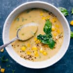 This fresh, vibrant Corn Soup Recipe packs big flavor with minimal ingredients and quick prep. Sweet corn and basil shine in this naturally dairy-free, gluten-free dish!