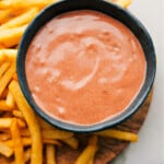 Storage: Store in an airtight container in the fridge for 3–5 days. If the sauce develops a strange odor, flavor, or appearance, discard it. Fry sauce doesn’t freeze or thaw well. If you don’t need a full batch, consider making a half batch instead.