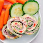 Note 1: Use full-fat Philadelphia® cream cheese for richer flavor and a thicker consistency. Soften before use for a smoother texture. To soften quickly, microwave the unwrapped block on a plate for 15–20 seconds, flipping and microwaving 10 seconds more if needed.Note 2: You’re just adding the dry ranch seasoning mix here (don’t prepare the mix!). I highly recommend Hidden Valley® Ranch seasoning packets; in my experience, they have the best flavor without being overly salty (not sponsored).Storage: Store leftover pinwheels in an airtight container in the fridge for 2-3 days. Keep them tightly packed to prevent unrolling.