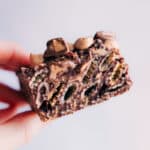 Pour the melted chocolate mixture into the measured cereal and use a sturdy spatula to mix gently until the cereal is evenly coated. Let the mixture sit for a minute or 2 to cool a bit, then add the Reese’s cups and peanut butter chips. (They’ll still melt a bit—this is intended.) Gently mix through a few times. Transfer and gently and evenly press the mixture into the prepared pan (see note 4).