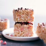 Note 1: For the crushed candy cane topping, add 1 unwrapped candy cane to a small plastic bag and seal the bag. Crush with a rolling pin coarsely and sprinkle on top of the treats.Storage: Store the bars in an airtight container at room temperature. They are best enjoyed (texture and taste-wise) within the first couple of days. Freezing and thawing affects the texture, and the chocolate will thaw and be grainy, so I don’t recommend freezing these bars.