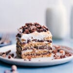 Note 1: This cake doesn’t work well in an 8x8-inch or smaller pan. The 9x9-inch pan is filled to the very brim and allows for the graham crackers to be placed in an even layer with minimal breaking.Note 2: Use high-quality chocolate chips for best results. You’ll get a better melt and a better flavor. My favorite is Ghirardelli® or Guittard®. Cheaper brands can have a waxier content that is far less flavorful and won’t melt into a smooth ganache as nicely.Note 3: Jet-Puffed Marshmallow Creme® (not sponsored) is my favorite to use. To easily remove the marshmallow creme (which is very sticky!), run a spoon under hot water for about 20 seconds. Dry it off and scoop out all of the creme from the container.Storage: This cake is best eaten within 4 days; after that it begins to become a bit watery. Keep the cake in the fridge and serve directly from the fridge. Return leftovers promptly to the fridge. This cake isn’t a great candidate for freezing and thawing—there is so much dairy that it can become grainy and watery.