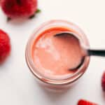 This tangy, sweet Strawberry Vinaigrette is perfect for fresh salads loaded with berries, peaches, candied nuts, and creamy cheese! Full of flavor and super fresh!